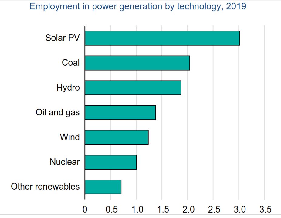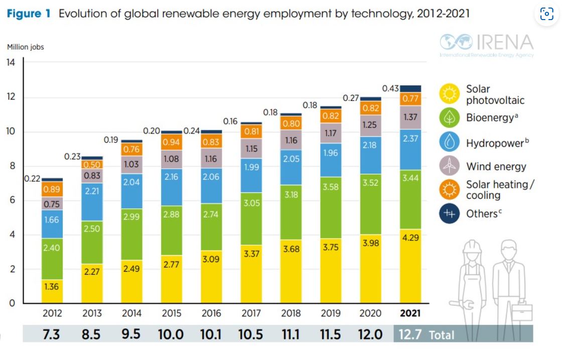 Nel 2021 gli occupati nel settore fotovoltaico nel mondo sono stati 4,29 mln mentre quelli nel settore eolico 1,37 mln. Nel 2019 gli occupati nel settore della generazione a combustibili fossili sono stati 3,43 mln.⤵️