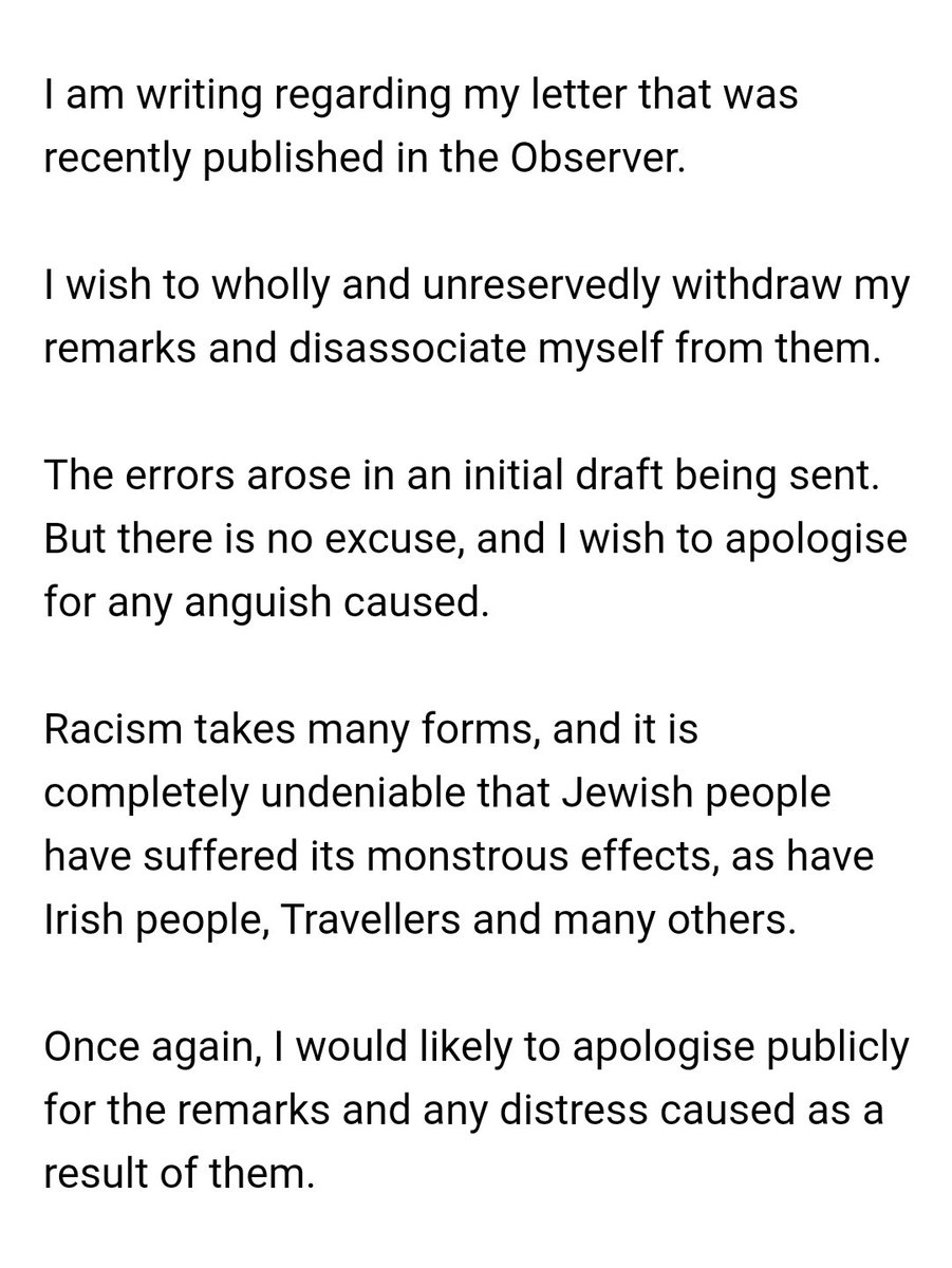 There's a lot of outrage at this letter but it's important to be clear about why it's so wrong: Irish, Jews and Travellers have historically been raciallised as non-white or racially inferior. 'Whiteness' is not static (and in any case many Jews and Travellers are dark skinned)
