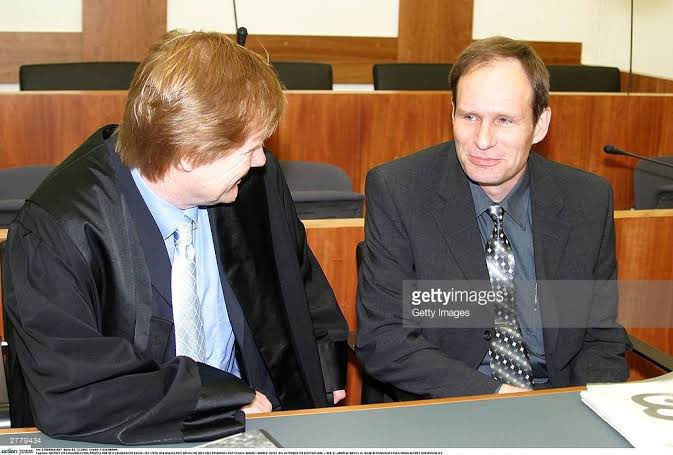 Y un estudiante Innsbruck que vio los posts en los foros, decidió denunciarlo, así fue como la policía dio con el, y fue arrestado en Diciembre 2002. Ahora hablemos de los aspectos legales, porque debido a que Bernd dio su consentimiento y esto hizo el caso más complejo porque +
