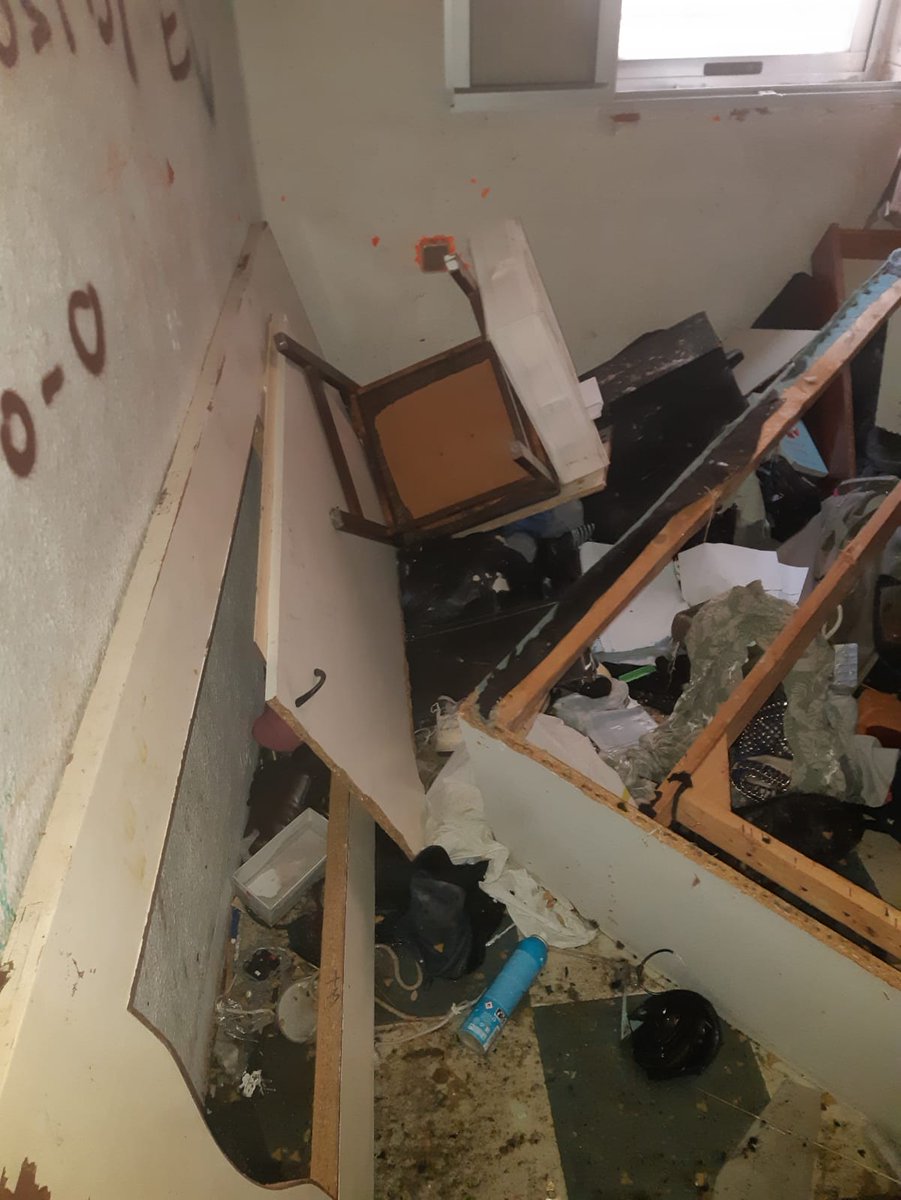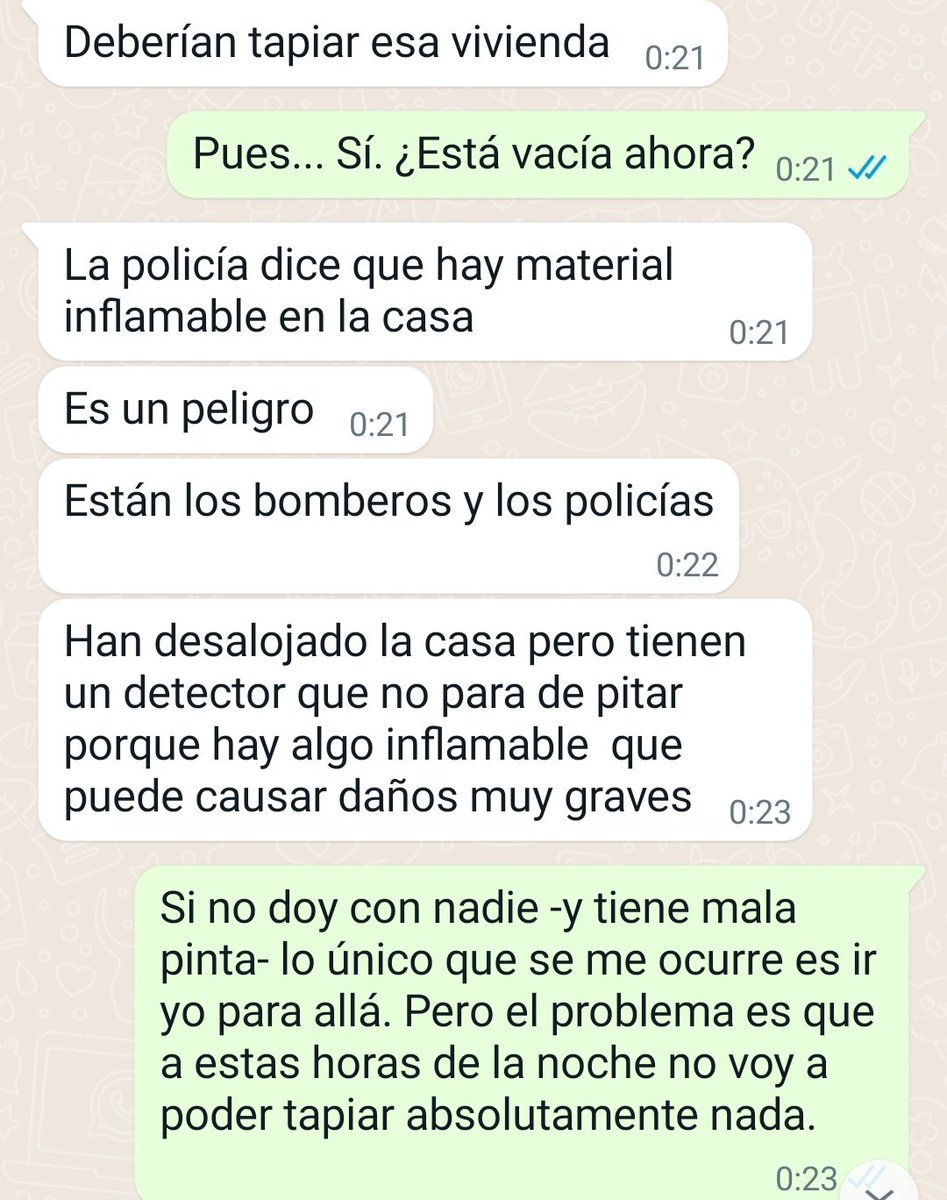 Ahora mismo mi cliente está en el interior del inmueble. Está sacando fotos y vídeos porque está todo quemado amén de lleno de mierda.