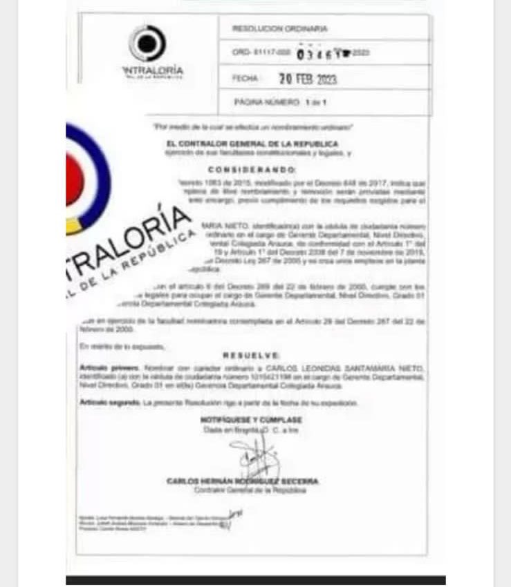 ¿Quién es Carlos Santamaría Nieto? Santamaría es parte del grupo político de German Rozo, pero además… ojo a esto: fue el Secretario de Gobierno del ex gobernador de Arauca, Ricardo Alvarado que hoy está imputado por la Fiscalía por haber financiado al ELN. 6/8