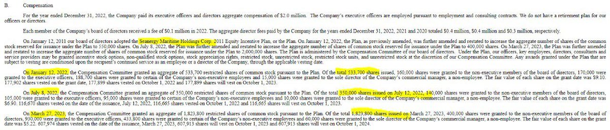 In a year in which the minority shareholder lost over half the money invested in $SHIP, the management managed to extract 14% of the company. Get your calculators out: 533,700 + 350,000 + 1,823,800 + 2,707,500 shares, created out of thin air. Not that different from a crypto scam