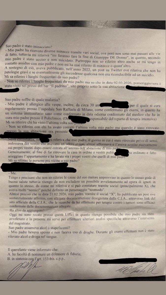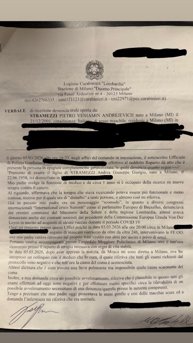 Le immagini vengono dal profilo X di Pietro Stramezzi. È un verbale di ricezione di denuncia presentato presso la Arma dei Carabinieri (stazione Mi Duomo).