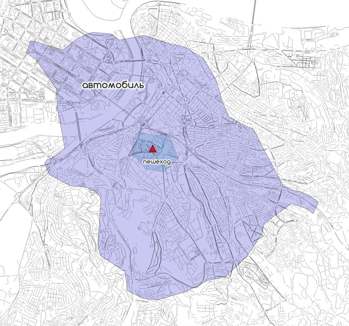 чем больше изохронная поверхность похожа на круг, тем круче для человека как для жителя города. Это значит, что он может идти буквально в любую сторону.