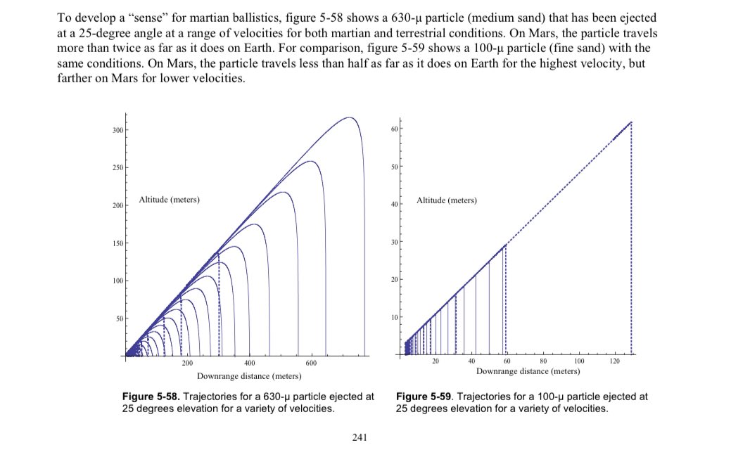 5/ Knowing that initial velocity will help calibrate models of particles accelerated by a plume. For Mars I used plume simulations with assumed crater shapes then I integrated the forces on the particles as they are blown out of the crater. (Image: ntrs.nasa.gov/api/citations/…)