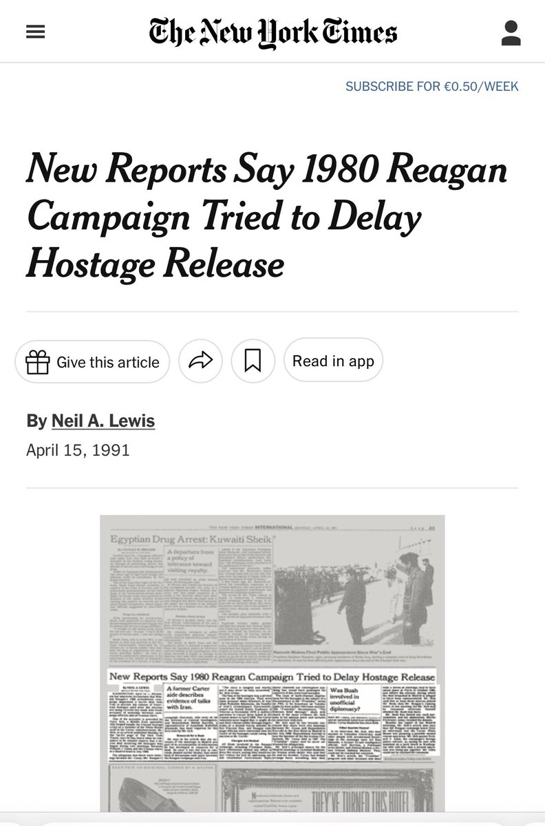 گزارشاتی مبنی بر نقش حزب جمهوری خواه برای به تاخیر انداختن آزادی گروگان ها برای ضربه زدن به انتخاب مجدد کارتر وجود دارد. /۷