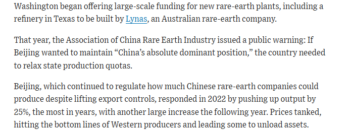 Just as an example of how far the political debate has come -- Bob Lighthizer (no China dove) excluded rare earths and permanent magnets from the 301 tariffs back in 18 and 19 ...