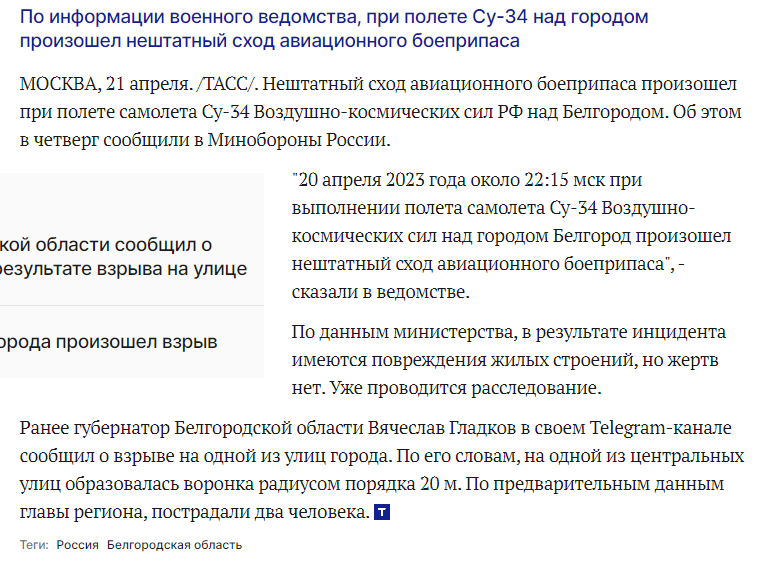 The Fighter Bomber says this was probably a UMPK FAB-500M62 glide bomb, but the wings didn't initiate for some reason so the bomb just fell. He says the fuze was set on delay, and detonated as it should (for targeting an underground target). 3/ t.me/fighter_bomber…