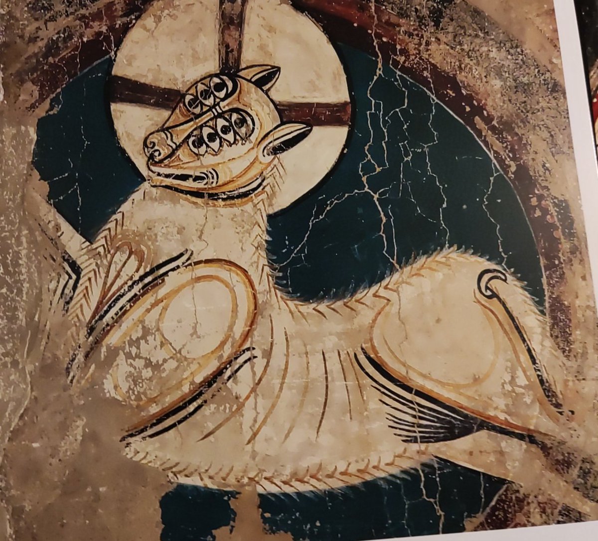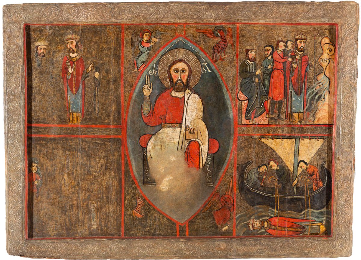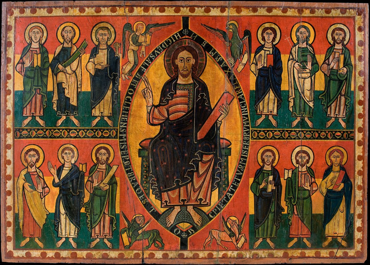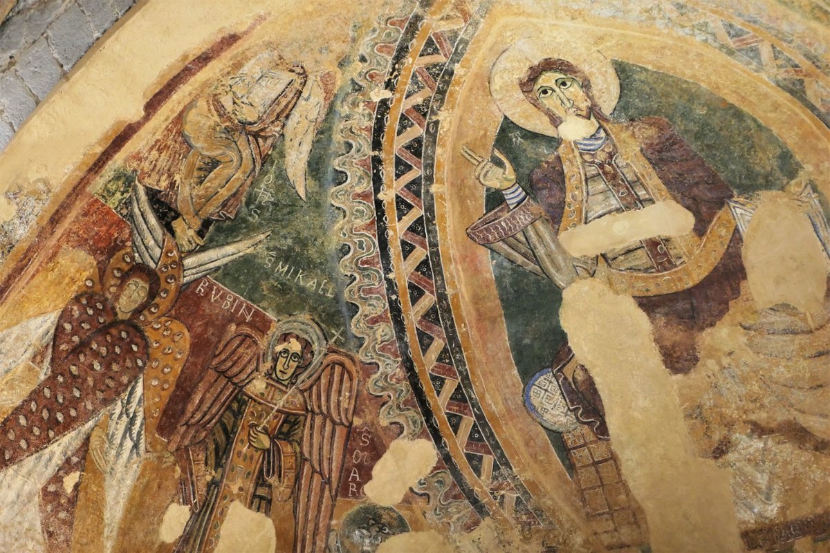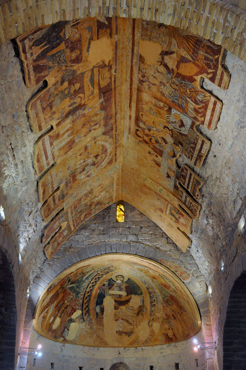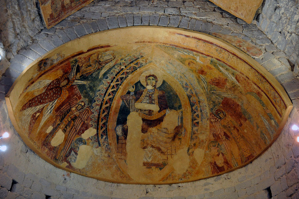 - A la conca absidial, la Maiestas Domini apareix encerclada pel Tetramorf i els habituals serafins i querubins amb ulls a les ales (segle XII).