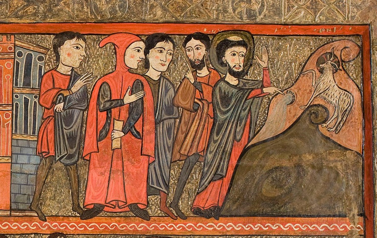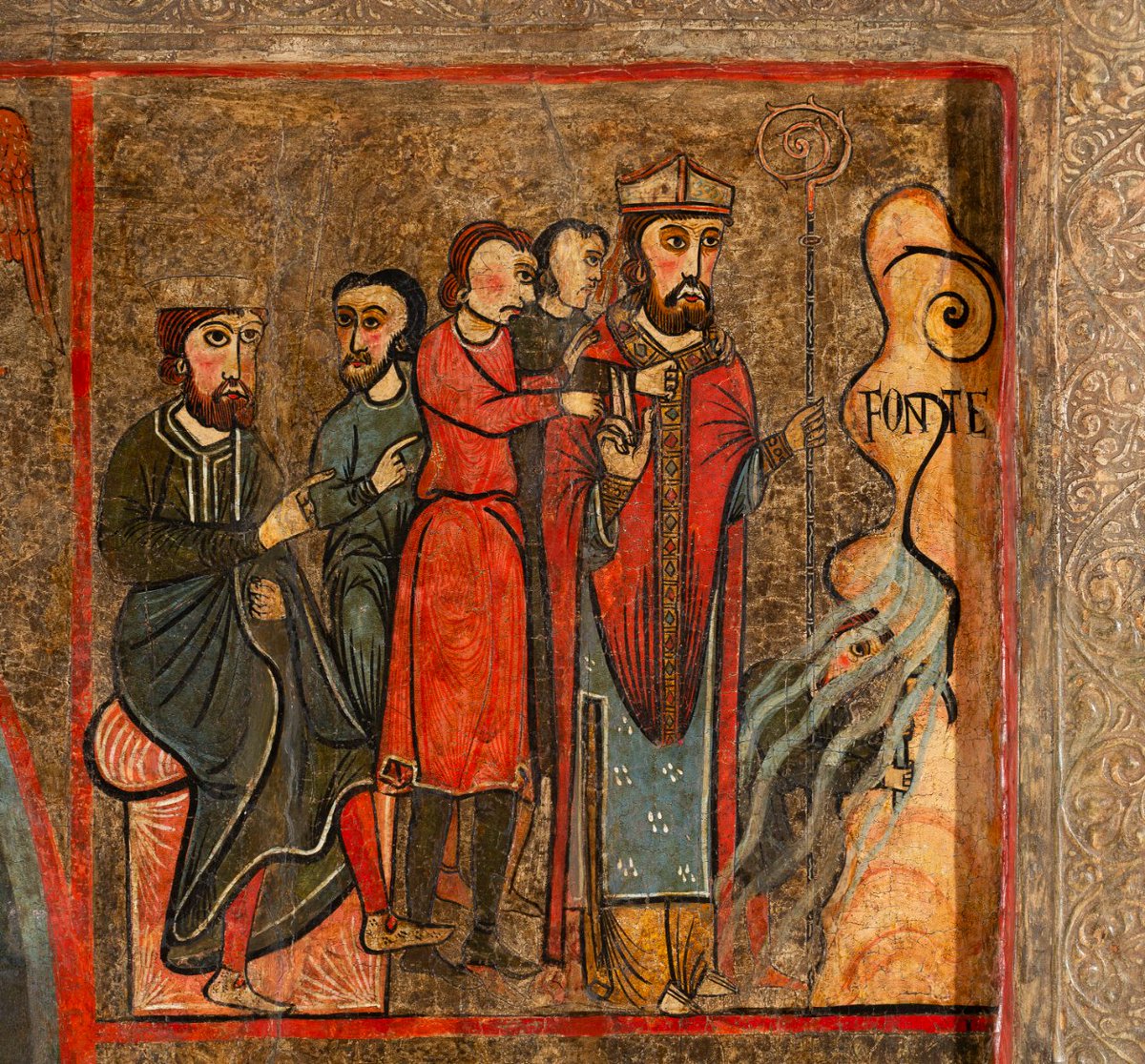 L'hagiografia ens diu que Climent de Roma, tercer successor de Pere, feu brollar una font miraculosa durant el seu desterrament a Crimea. L'episodi apareix en frontals romànics catalans com el d'Estet, al @MuseuNac_Cat.