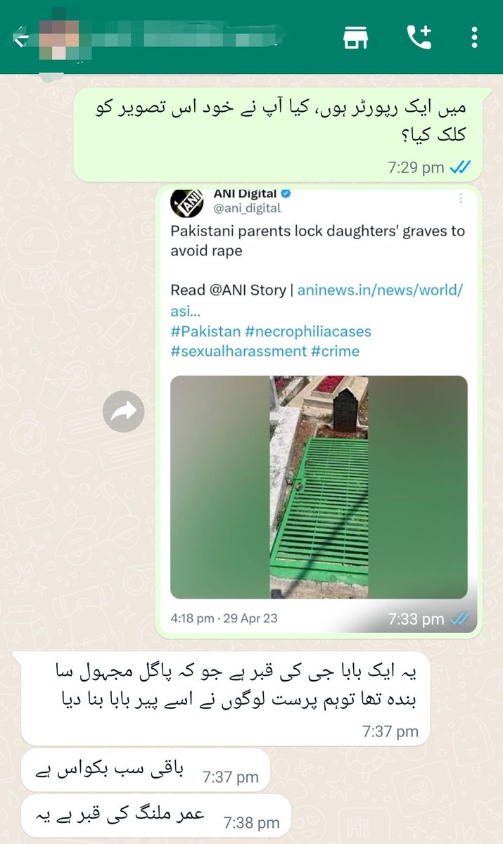 Alt News also spoke to a local resident whose house is near the mosque. He informed us that the grave belonged to an aged woman who had passed away in her seventies. Her son constructed the grille over the grave about 40 days after she had been buried.