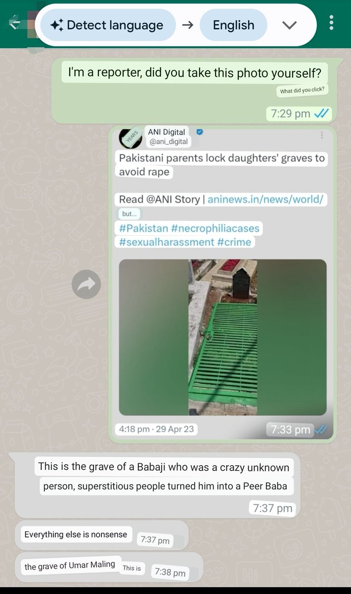 Alt News contacted a social worker named Abdul Jaleel who is a resident of Hyderabad. On being requested by us, he visited the spot and provided us with photographs of the grave in question.