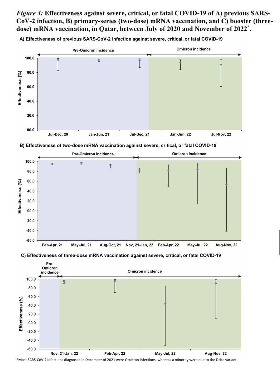 Effectiveness of previous infection and vaccination against severe, critical, or fatal COVID-19 were generally >80% throughout the study duration. 8/