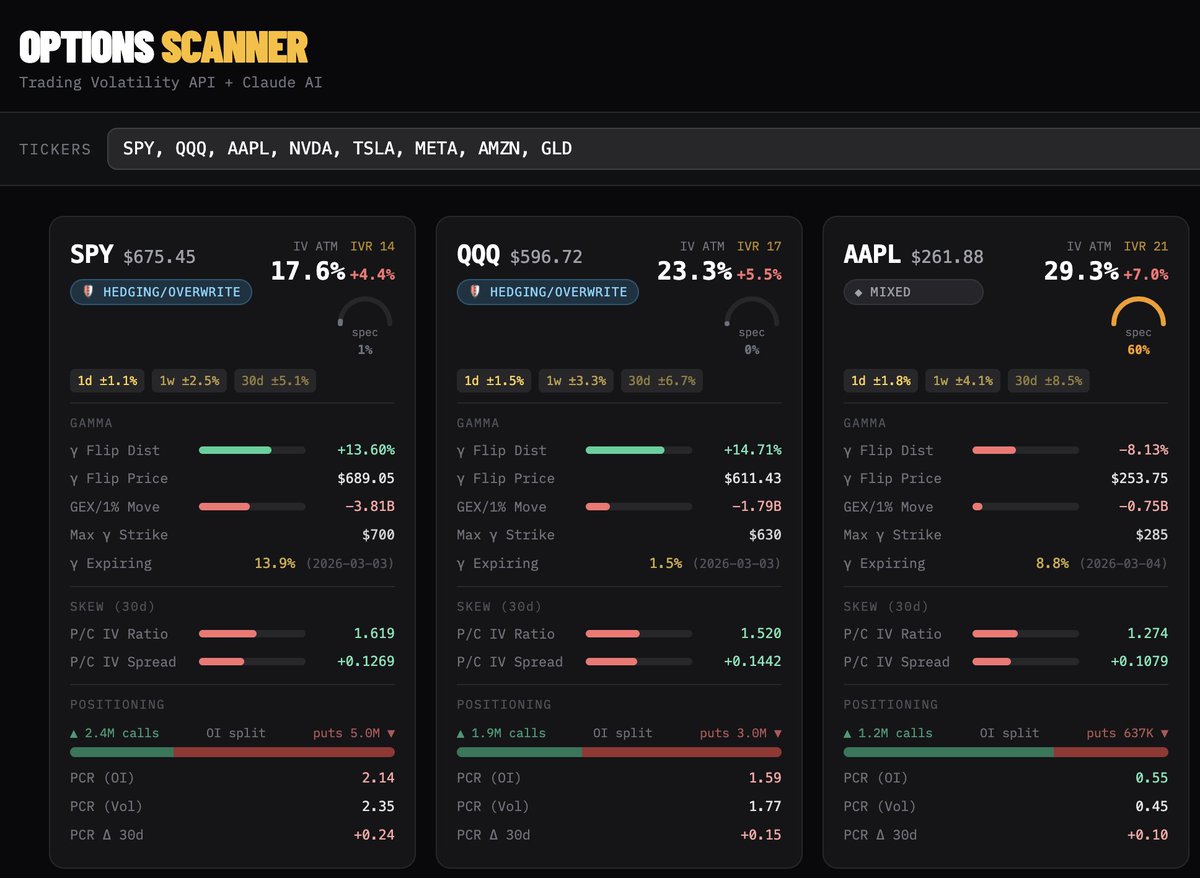- a visual of the current 30-DTE skew + 5-day history