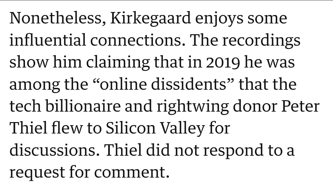 He's close with Emil Kirkegaard who met Peter Thiel. Jordan wrote on jews being superior to Whites.