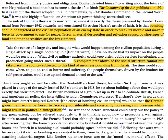 Background: Western “Jus in Bello" traditions prohibited attacks against innocent civilians and non-combatants. But some 20th Century air-power enthusiasts argued that civilian population areas should be *deliberately* targeted.