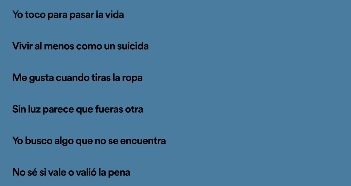 Buscando amores, probando y experimentando, insatisfecho o enojado, por momentos rebelde, por momentos esperanzado, por momentos golpeado, sus letras de amores y desamores, excesos y enojos, perdidas y ausencias reflejaban lo que vivíamos y sentíamos.