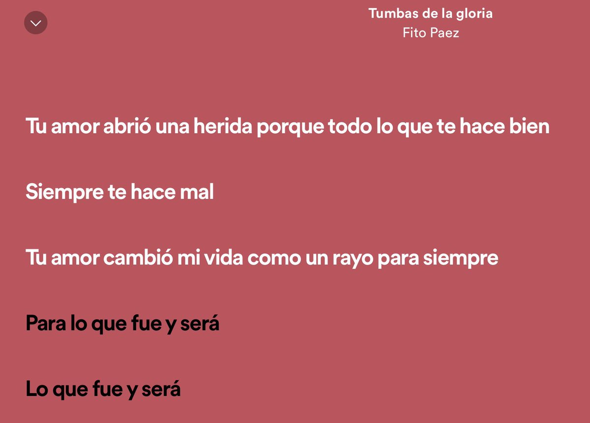Y nos recuerda como le pusimos el cuerpo. Llenamos las plazas del país en Semana Santa. No solo no todo estaba perdido, teníamos las ganas de reconstruirlo. Fito contando su vida, nos contaba, exhibiendo sus llagas y cicatrices nos interpelaba como chicos y como sociedad.