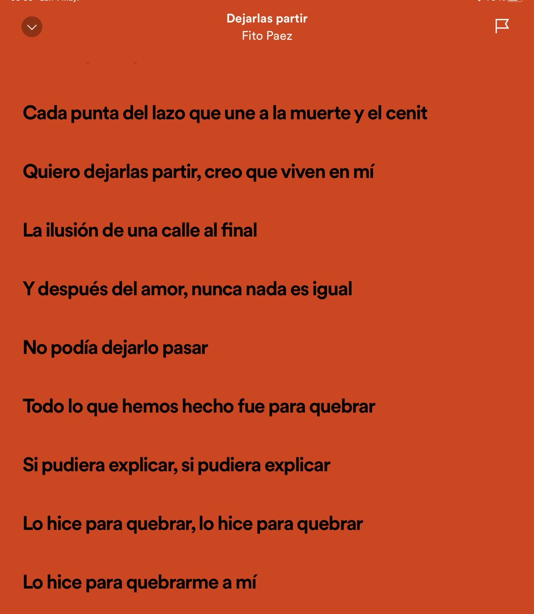 Solíamos decir que, enamorado, enterró al Fito maldito y verdadero. Hoy vemos que fue al revés. Era cuestión de crecer. Años después, pudo sintetizarlo en Dejarlas Partir. Y nos dejó la ilusion de una calle al final. Ahí empecé a entenderlo. Y a dejarlo partir.