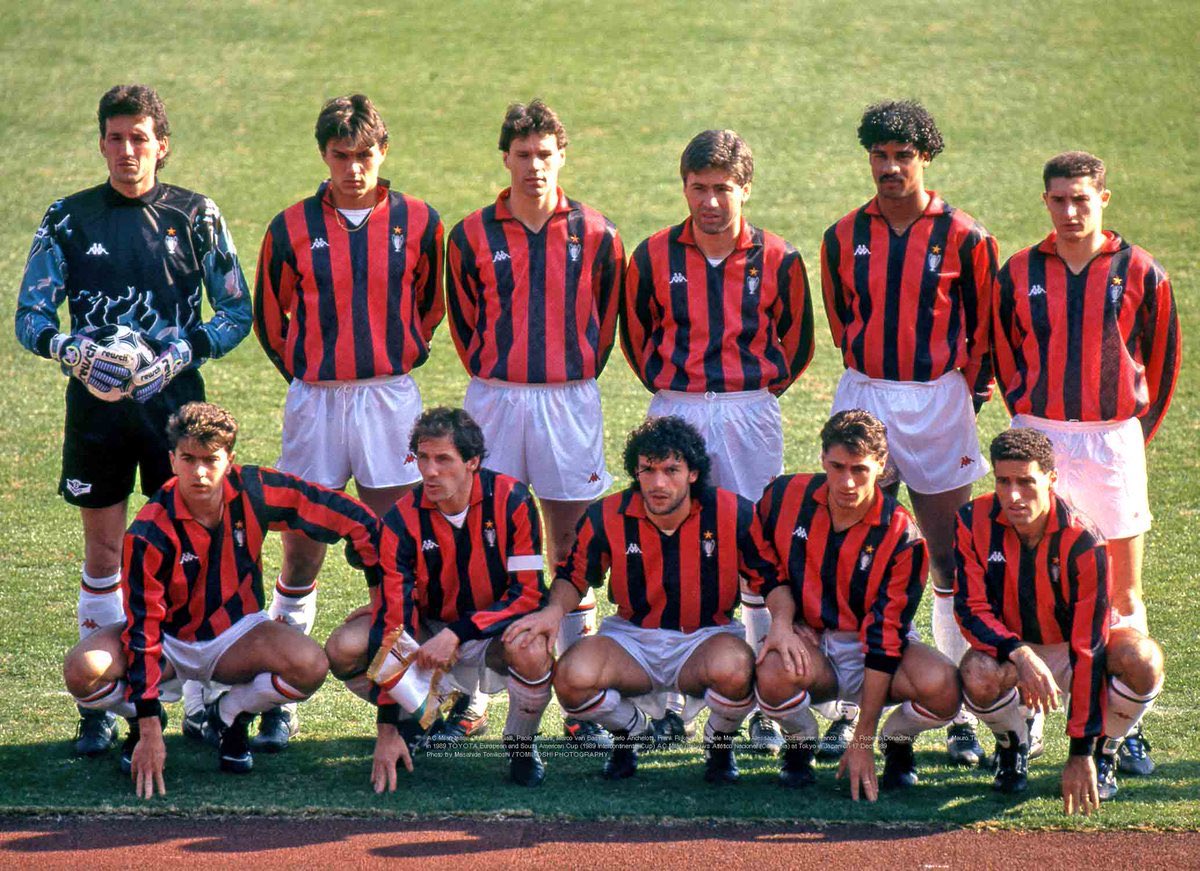 Su modelo base, con movimientos mecanizados entre todos, era el 4-4-2. Un equipo con unos nombres propios que lo hizo todo posible: arriba Van Vasten y Gullit, un talentoso que hechizó a Sacchi por su espíritu entregado al colectivo. Un mediocampo con Rijkaard y Ancelotti.