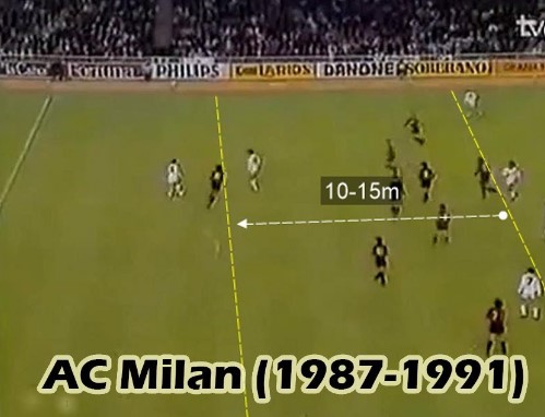 Y era ver a un equipo corto y compacto que tenía 25 metros de largo entre Baresi y Van Basten.