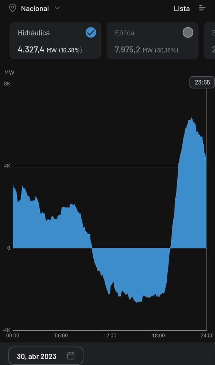 Por otra parte, no hay más que ver la generación hidráulica de las últimas semanas, que está en mínimos y muchos días se limita a subir y bajar agua (bombear y turbinar), sin suponer una pérdida neta. Aquí un ejemplo de lo que ocurrió el 30 de abril.
