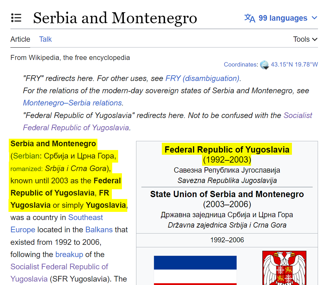 Firstly, the first picture in the thread is actually from the bombing of Iraq, not Yugoslavia. Secondly, Serbia and Montenegro was known as the Federal Republic of Yugoslavia or Yugoslavia until 2003. ImageImage