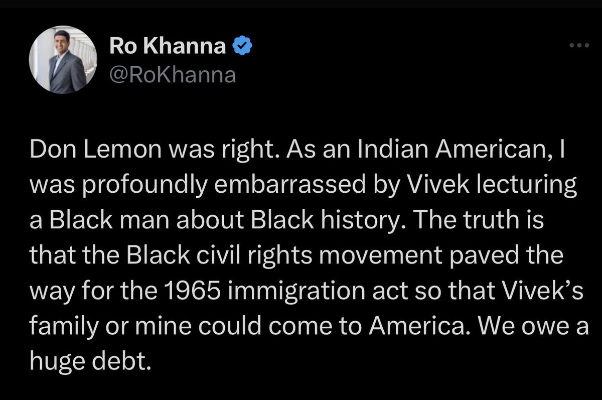 And let’s be really clear — as @RoKhanna points out here — all minorities owe a debt of gratitude to Black Americans whose blood, sweat, and tears paved the way for the opportunities they have in this country.