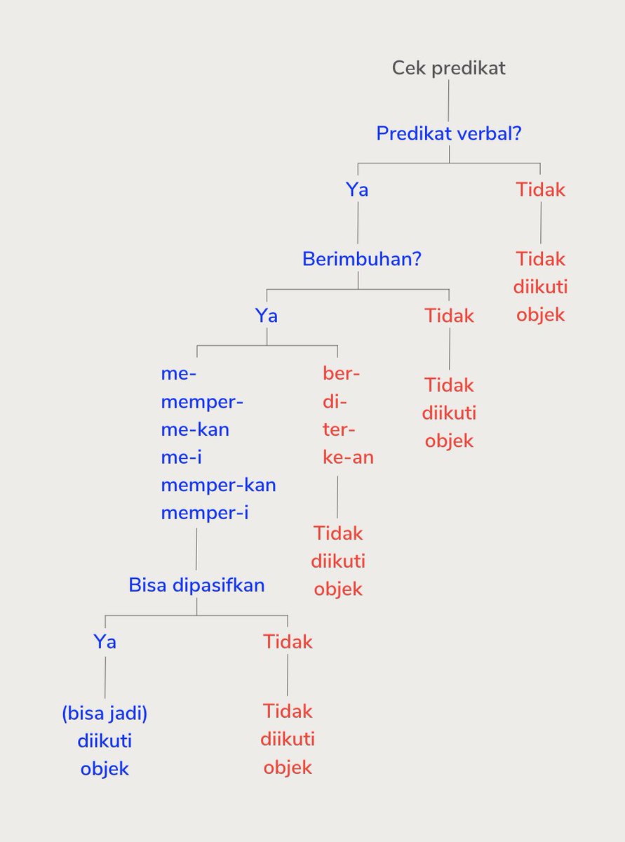 Predikat verba berimbuhan me-, memper- atau kombinasi afiks me-kan, me-i, memper-kan, dan memper-i bisa jadi diikuti objek.