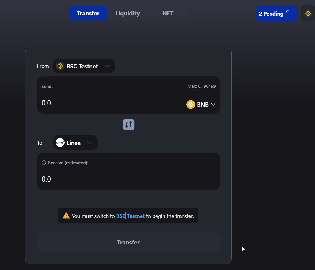 NOTE: there is many issue with CBridge on testnet, so you have to keep refresh the page and keep try, Once tx Submitted successfully, it goes stuck and Still my Txs are pending.