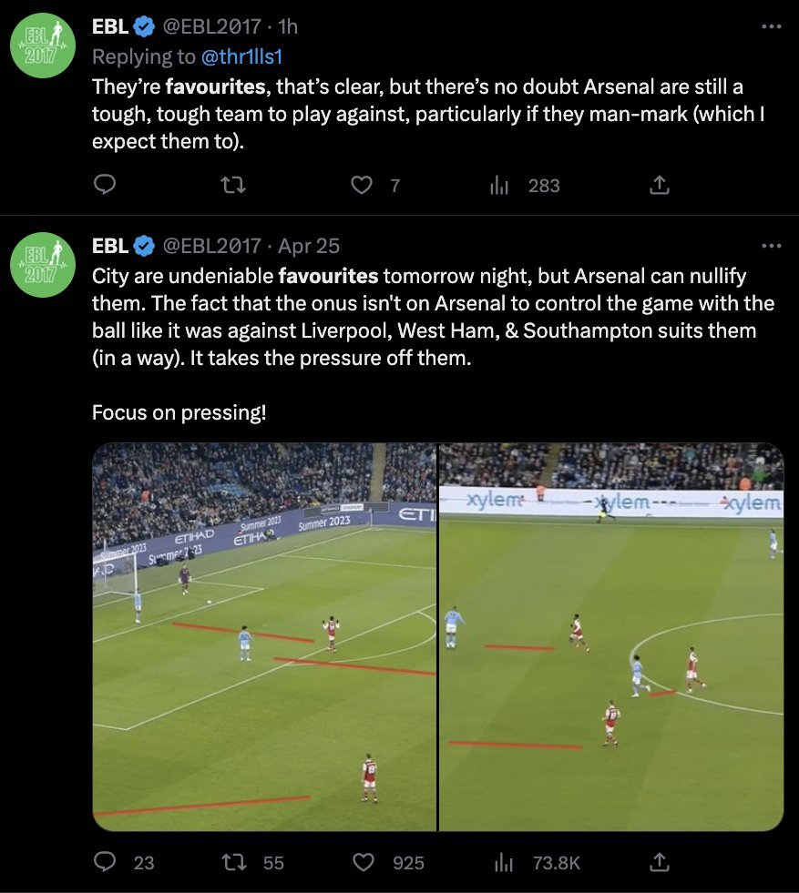 You have to consider the game from Arteta & Arsenal's perspective. City have played the same way for the entirety of 2023 (correct me if I'm wrong on that). Instead, Pep played a 4-2-4 which completely discombobulated Arsenal's press (either a centre back or KDB are always free).