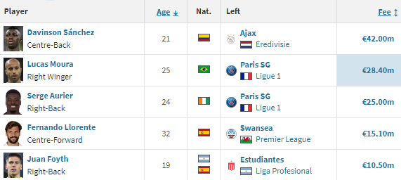 Kyle Walker was sold from the first team & was replaced with Serge Aurier. Kevin Wimmer was sold & replaced with Davinson Sánchez. Extra attacking depth was added in the form of Lucas Moura & Fernando Llorente.
