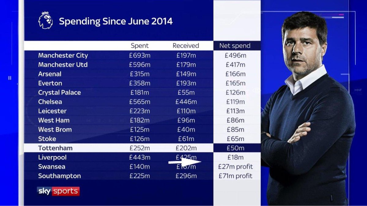Well, in April 2020, Spurs' net spend was only -£50m.