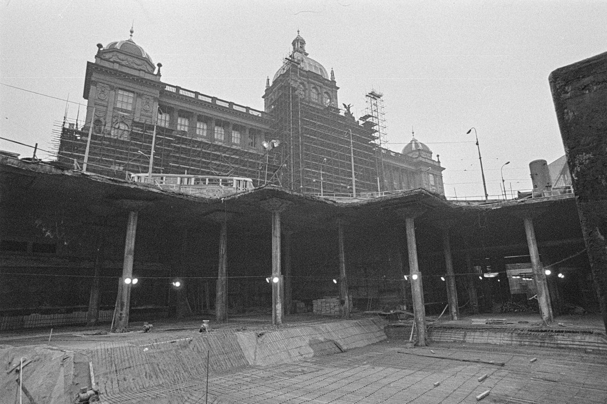 Pohled na výstavbu vestibulu stanice Muzeum. Později se stala první přestupní stanicí pražského metra.