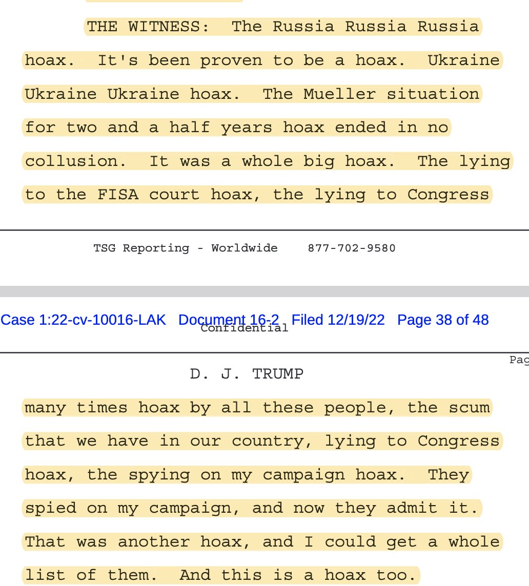Q: Are you testifying in this case because of your negative views about Donald Trump?