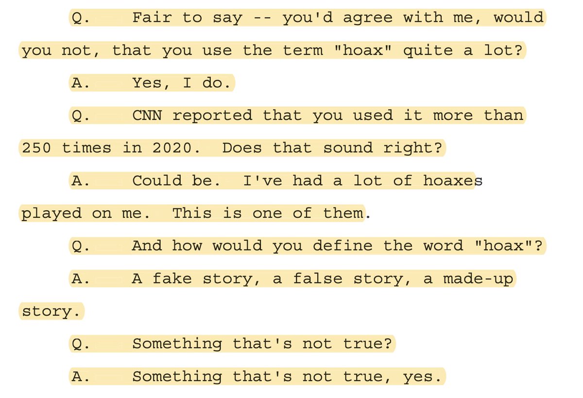 Reporter @vicbekiempis noted in court that the parties haven't disclosed Trump's video deposition publicly. She has been pushing for access, along with numerous news outlets in the in-house press corps.