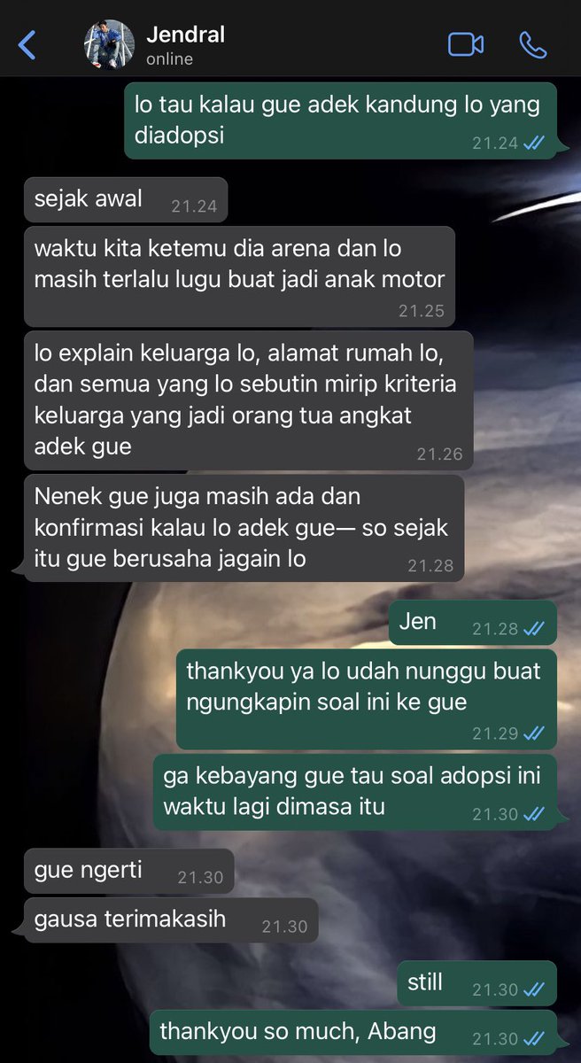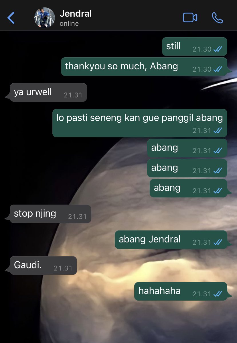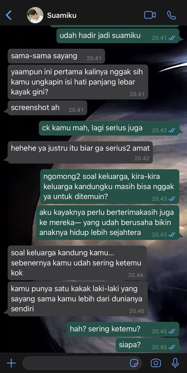 kakaknya nggak mau disebut nama but dia salah satu mahaeist yang lumayan aktif kok xixi (refleks cek mutual). and second, thankyou buat para readersku yang baik dan budiman sudah mengikuti AU ini dengan antusias. glad if u like it. sampai ketemu di AU selanjutnya.
