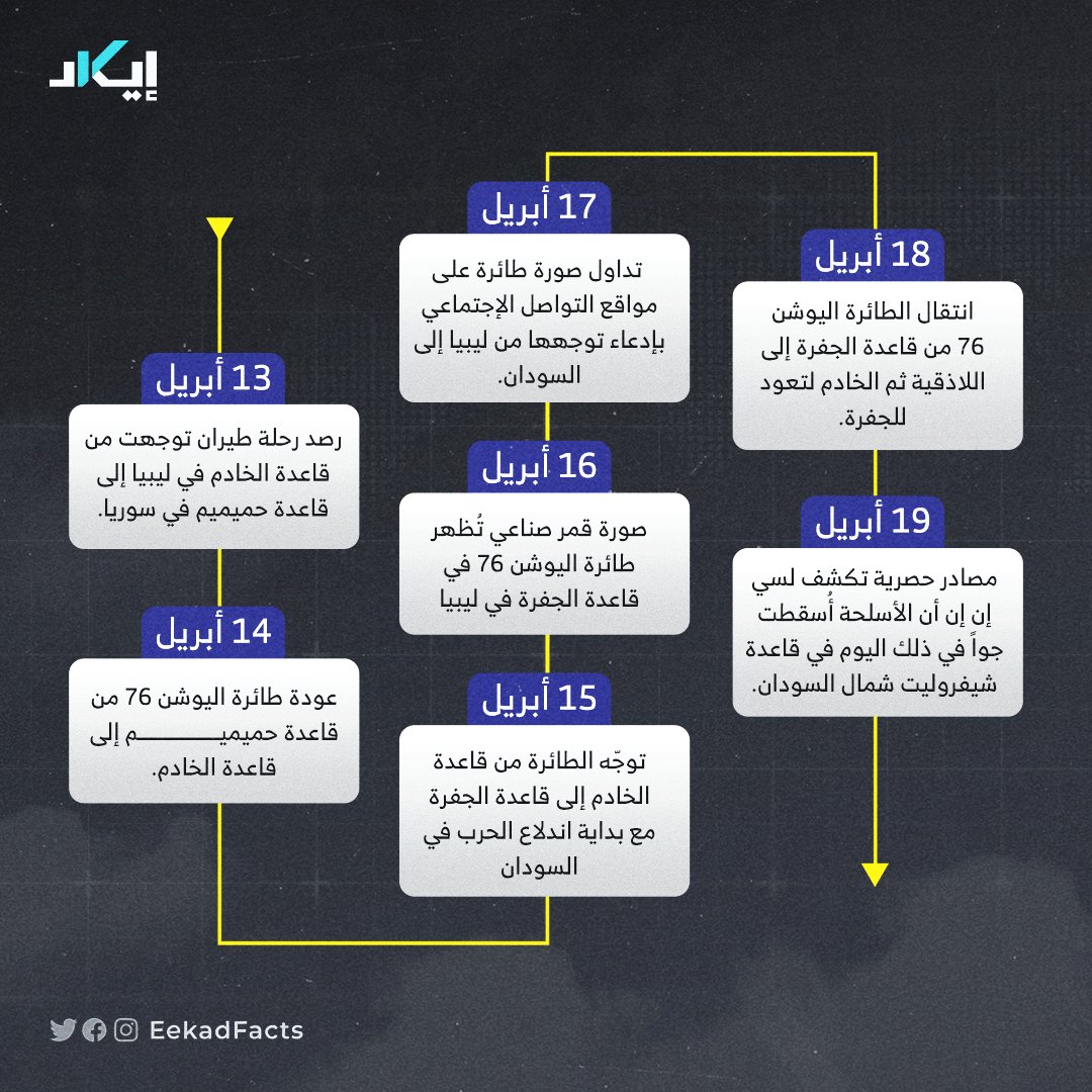 🔻 تحقيق CNN كشف كذلك أن نقل المساعدات تم بواسطة طائرة شحن من طراز إليوشن 76، لكن الغريب أن رحلات الطائرة بين سوريا وليبيا تزايدت بشكل غير طبيعي قبل يومين من بدء الصراع في السودان.