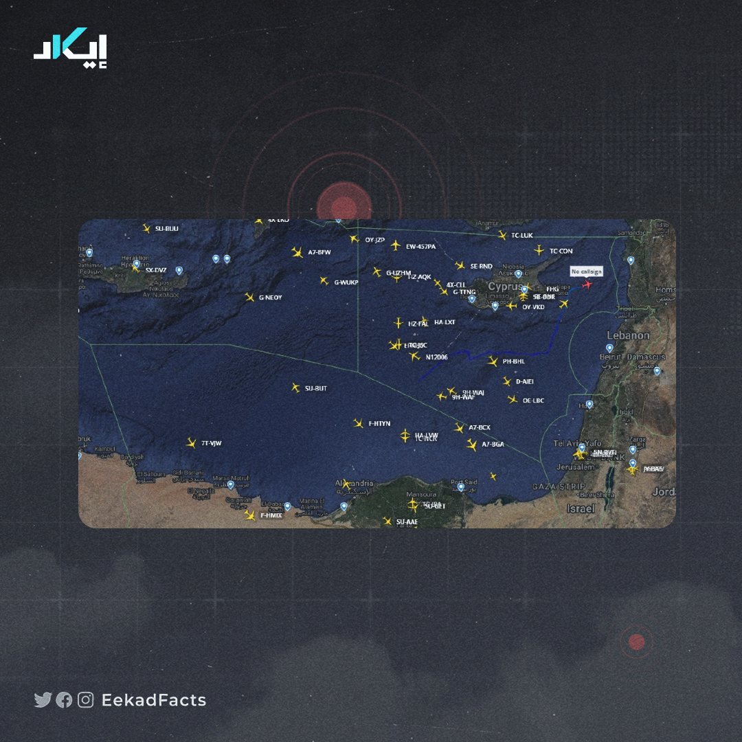 🔻 في 24 أبريل رصدنا طائرة تحمل رقم icao:079A00 نفذت طلعة جوية من ليبيا الساعة 9 مساء 24 أبريل، وأخفت بياناتها الملاحية لتظهر في شرق المتوسط قادمة باتجاه قاعدة حميميم الروسية في سوريا.