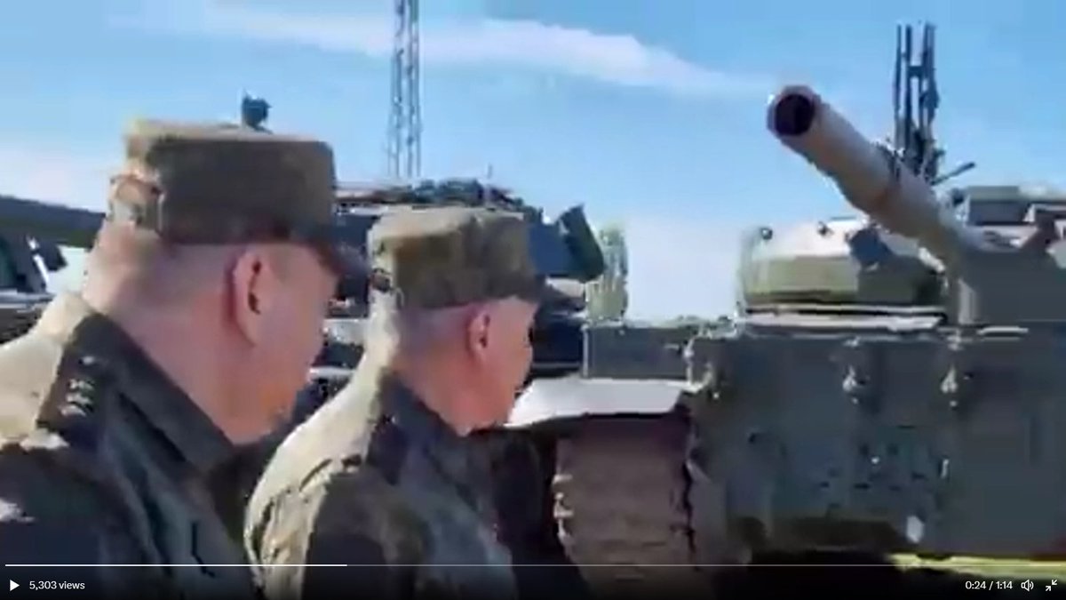 so the ru military commander went to inspect a tank brigade inside russia (not ukr) to show off all the new T90s. i think the video quality was to hide something... most are not T90s.. T62Ms standing in for the missing T90s