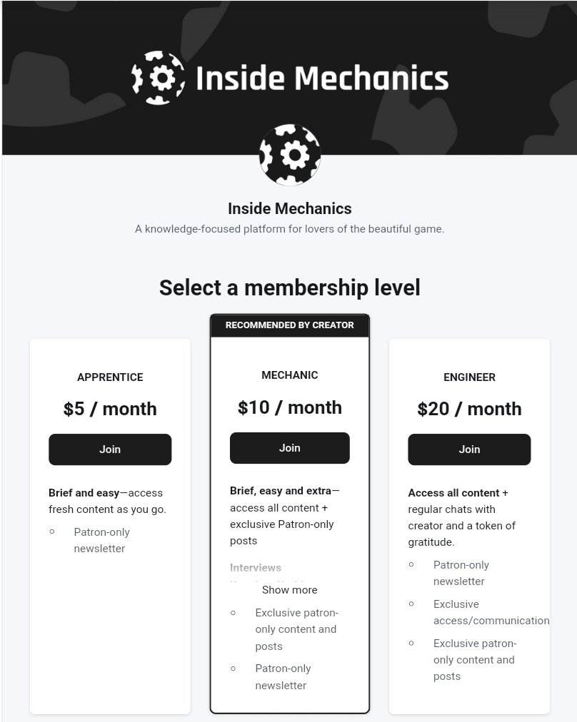 From the price of $5 a month, you can access next-level football knowledge in simple, elegant and precise language over the next few weeks.