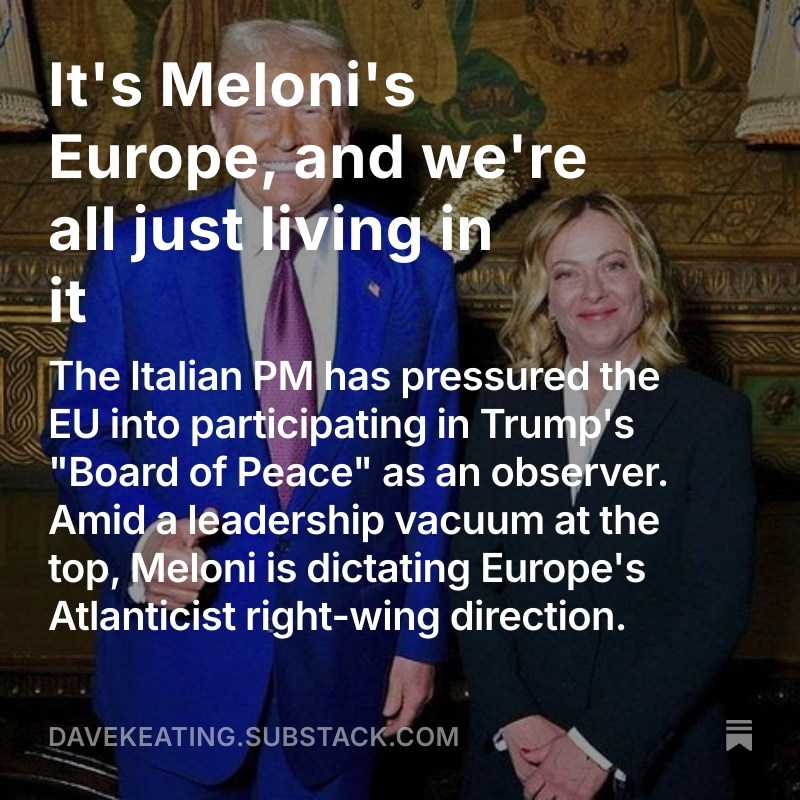 Meloni is filling a leadership vacuum and determining the direction of travel. That means more Trump appeasement and less efforts toward European sovereignty. davekeating.substack.com/p/its-melonis-…