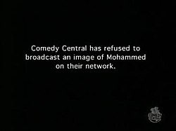 Lo que les acabo de mostrar es la versión no censurada, que obviamente no salió al aire. En su lugar, Comedy Central mostró esta placa. Dijeron que no quisieron pasarlo por "seguridad pública". Stone dijo que los de la televisora eran unos cobardes.