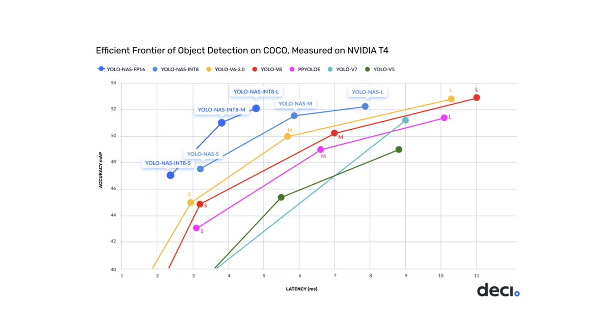 TL;DR: YOLO-NAS achieves impressive latency (200 FPS even with the largest model!) and performs well relative to other lightweight object detectors. Thanks to my friend @DataScienceHarp for sharing this interesting research with me!