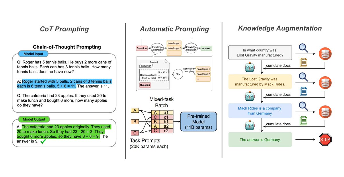 We can use few-shot learning and instruction prompting to solve many problems with large language models (LLMs), but what should we do when these techniques fall short? Here are three advanced prompting approaches that can be used to solve complex problems with LLMs… 🧵 [1/8]