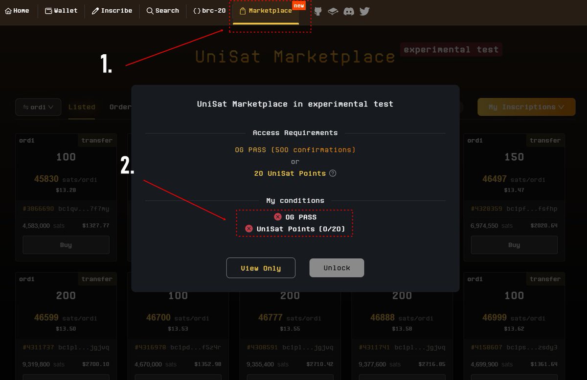 To access the marketplace you need 20 Unisats Points