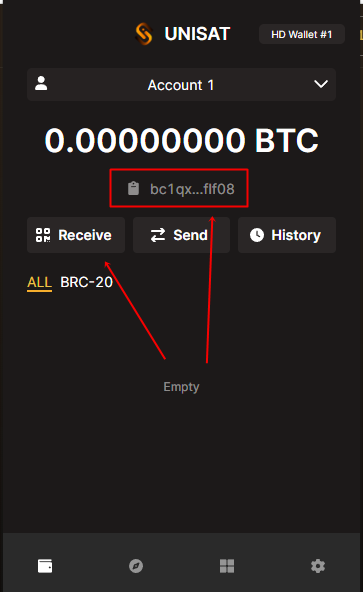 3.Copy Address from your wallet & Deposit $BTC for Gas /Trade