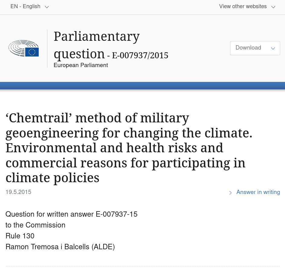 La Commission Européenne a abordé l'utisiation de la méthode de GÉO-INGÉNIÉRIE militaire "CHEMTRAIL" pour modifier le climat.
