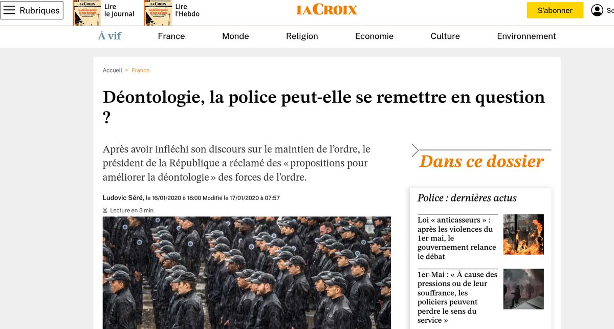 Parce qu'avec les dérapages au sein des forces de l'ordre ont voit aussi passer le discours selon lequel il faudrait pas trop insister sur la déontologie, sinon les flics ne pourront plus faire leur job.