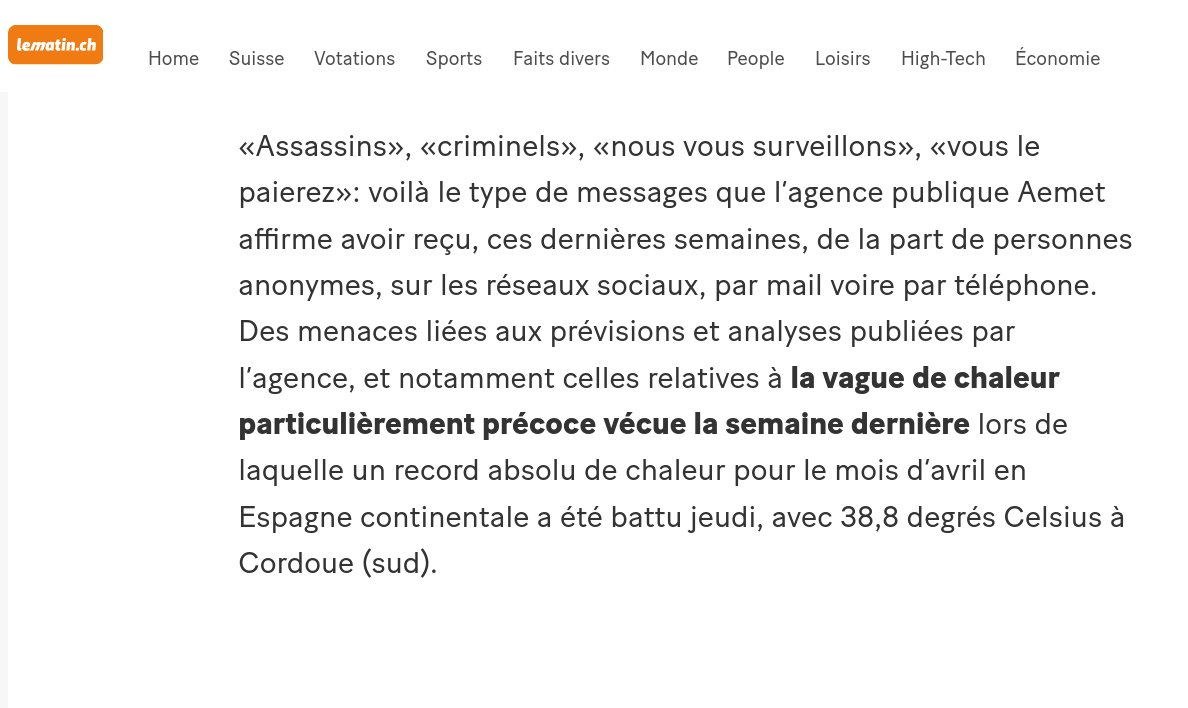 Il y a 3 semaines, l'Agence de Météorologie espagnole était ciblée par des insultes et des menaces parce qu'elle annonçait une vague de chaleur inhabituelle et un absence de préciptiations. On les accusait donc de mentir sur les prévisions météo. 2/